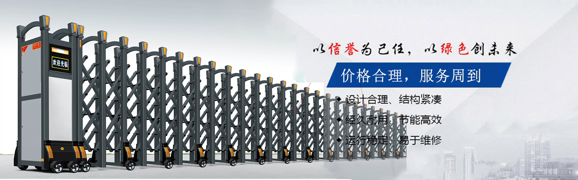 1、經(jīng)驗豐富:多年伸縮門行業(yè)經(jīng)驗,為您提供專業(yè)的產(chǎn)品選購方案